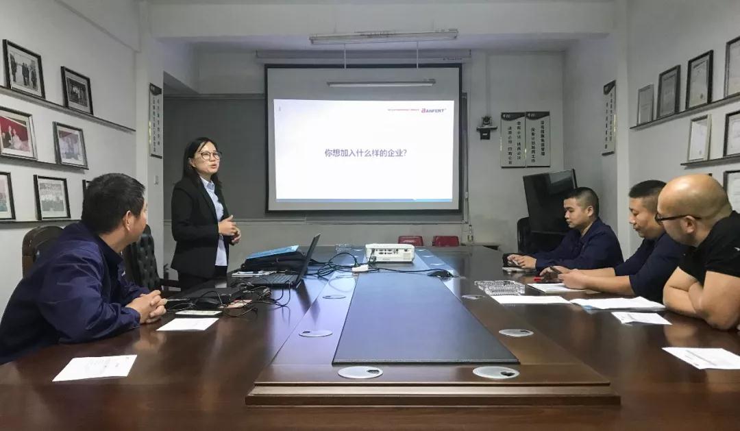 0月16日晚,在邦弗特總部辦公樓四樓,培訓(xùn)教室燈火通明,同事們就餐后早早過來落座,從研發(fā)到生產(chǎn)等各部門無一缺席。