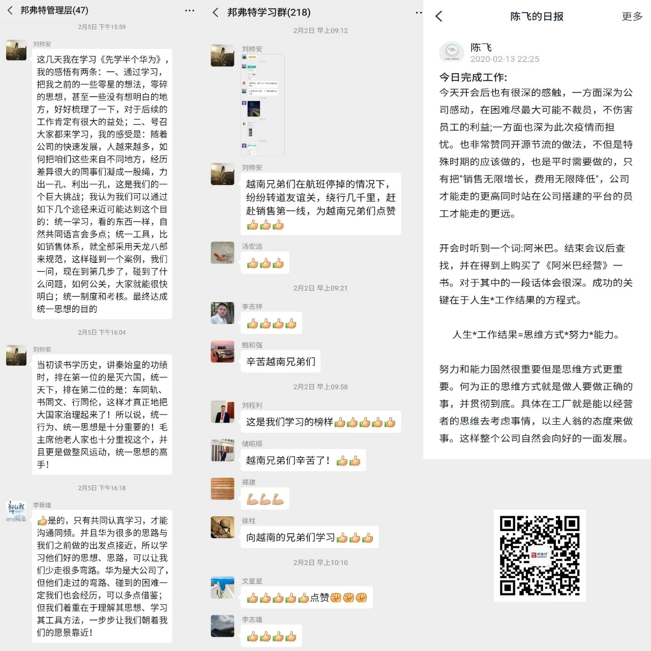 2020年,邦弗特以實(shí)現(xiàn)高質(zhì)量發(fā)展為目標(biāo),在疫情特殊時(shí)期,邦弗特積極配合政府做好各項(xiàng)防疫工作之余,創(chuàng)新突破、合規(guī)運(yùn)營(yíng),充分利用網(wǎng)絡(luò)資源的便利性,將為客戶服務(wù)和員工培訓(xùn)搬到線上,實(shí)現(xiàn)知識(shí)共享最大化!