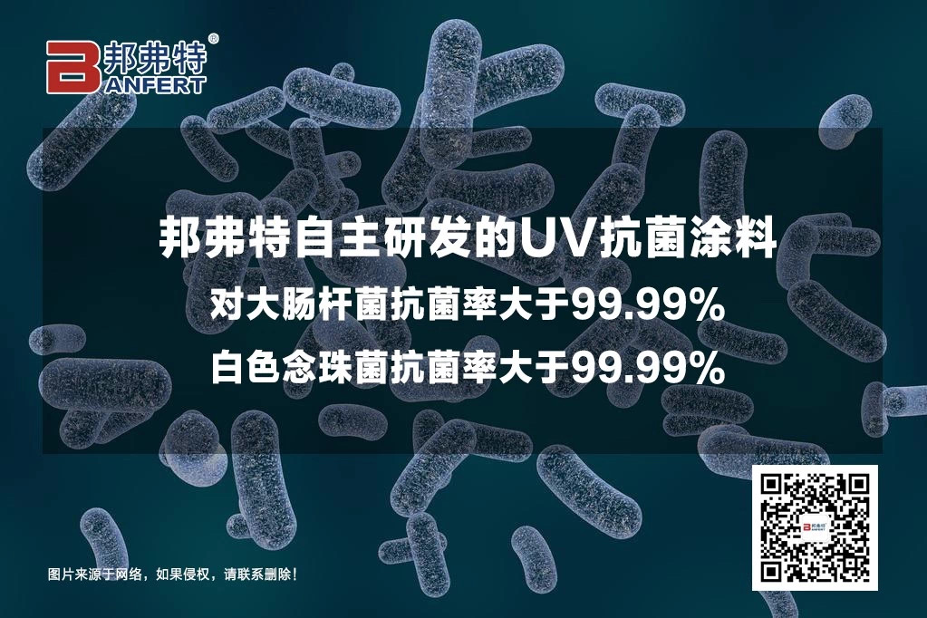 邦弗特UV抗菌涂料可廣泛應用于地板、家具、戶外涂裝等領域,涂層具有廣譜、長效的抗菌效果,有效抑制革蘭氏陽性菌和革蘭氏陰性菌生長,對于常規細菌例如大腸桿菌、金黃色葡萄球菌、肺炎克雷伯氏菌等抗菌率達99%以上,應用有UV抗菌涂料的環境,可極大降低細菌濃度,保護家人不受細菌感染侵襲。涂層同時可抑制霉菌、藻類滋生,例如黑曲霉、出芽短梗霉、球毛殼霉、普通小球藻、灰念珠藻等,保護材料免受微生物降解破壞。