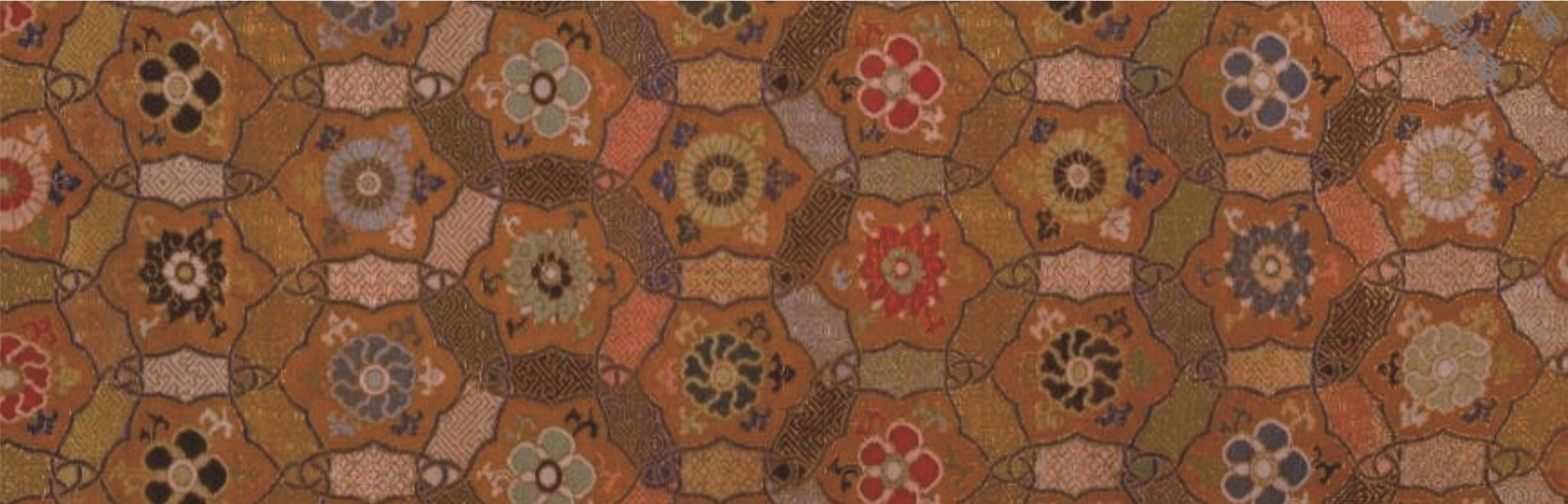 明代蘇州織造的「柿紅盤絳朵花宋錦」,原為“文徵明墨跡”包首,其色典雅,層次分明,是典型的宋錦構圖與用色方法,為宋錦中的上乘之作。