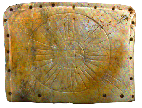 八角星紋發(fā)端久遠(yuǎn),山東大汶口文化中期八角星紋彩陶,安徽凌家灘新時(shí)期時(shí)代玉版八方圖形,均是河圖洛書(shū)的源頭。