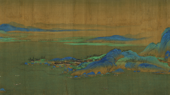 參展的數字版宋代王希孟《千里江山圖》中,石青、石綠兩色交織描繪著千里江山的錦繡恢弘。