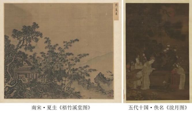 梧桐,樹中翹楚,有青桐、碧梧、青玉、庭梧之名稱,葉缺如花,象征著吉祥高潔,在中國古代文學作品中的出現頻率很高,宋代夏圭的《梧竹溪堂圖》以及五代十國《浣月圖》、南宋《桐蔭玩月圖》,圖中繪梧參天,宋代嚴蕊有詞云:“碧梧初出,桂花才吐,池上水花微謝?!痹娫~歌賦、山水書畫,“梧桐”意象是宋詞中極具代表性的一個內容,也展示著中國古人的極致審美和雅致生活。