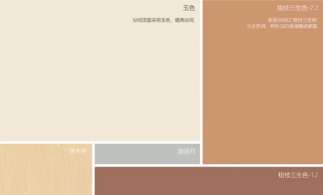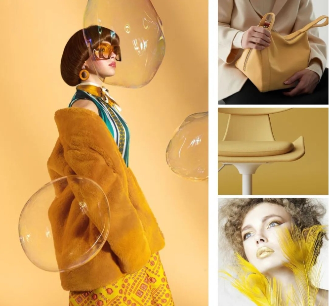 “三生色”,指由同一色相衍生出的三個及三個色以上的色彩。三生色系搭配因包含共同色相而互融互襯,盡顯細膩的層次、低調的高級。“梧枝三生色”,指從梧枝黃中衍生的三生色系,這是一組充滿希望、光明、溫暖的色系,呈現出極為治愈的視覺包裹感。