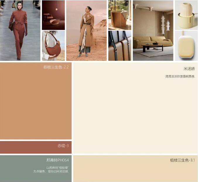 通過(guò)1000余份據(jù)調(diào)研數(shù)據(jù)、多家權(quán)威全球色彩機(jī)構(gòu)趨勢(shì)分析、傳統(tǒng)文化深入解析,鄧教授重點(diǎn)推介了邦弗特2024年度色“梧枝三生色”,讓人印象極為深刻。從國(guó)色析出的“梧枝三生色”,不僅符合后疫情時(shí)代對(duì)生機(jī)活力、松弛身心的情緒需求,也與數(shù)字經(jīng)濟(jì)時(shí)代美拉德等審美潮流有異曲同工之妙,更完美契合“五位六面一體”戰(zhàn)略的色彩應(yīng)用。
