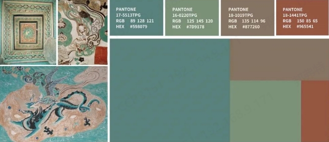 青色,是中國瓷器的代表色,是敦煌壁畫與海域中常見色,龍是兩地共有的靈性崇拜。