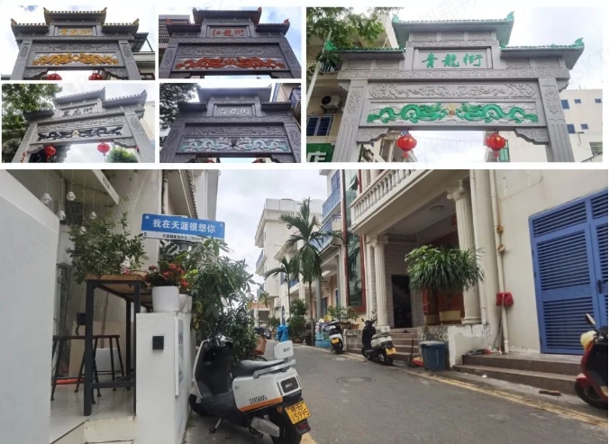 如位于海南省三亞市,被譽為地中海的圣托里尼島、宮崎駿漫畫里的小鎮的天涯鎮,小鎮上有黃龍街、青龍街、紅龍街、白龍街、黑龍街構成的五龍街。據當地的傳說,街名源于這里曾是寧遠河、落筆河、梅村河、樂安河、太陽河五條河涌的交界處,五條河涌住著青、白、赤、黑、黃五條神龍,它們掌管天上雨水及地上水源,被當地人奉為神物,可庇護風調雨順、國泰民安。