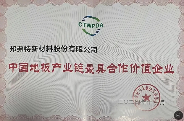 本次大會(huì)中,邦弗特憑借自身在地板領(lǐng)域長期以來對(duì)地板涂裝解決方案的深耕創(chuàng)新以及堅(jiān)持不懈的投入,榮獲 “中國地板產(chǎn)業(yè)鏈最具合作價(jià)值企業(yè)” 這一殊榮。這一榮譽(yù)的背后,是邦弗特以地板客戶需求為本的宗旨體現(xiàn),是研發(fā)團(tuán)隊(duì)夜以繼日的鉆研創(chuàng)新,是企業(yè)不斷突破技術(shù)瓶頸、探索新材料與新工藝應(yīng)用的有力見證,標(biāo)志著其在地板涂裝服務(wù)方面獲得了行業(yè)的高度認(rèn)可,為推動(dòng)整個(gè)地板產(chǎn)業(yè)鏈發(fā)展貢獻(xiàn)了積極力量。