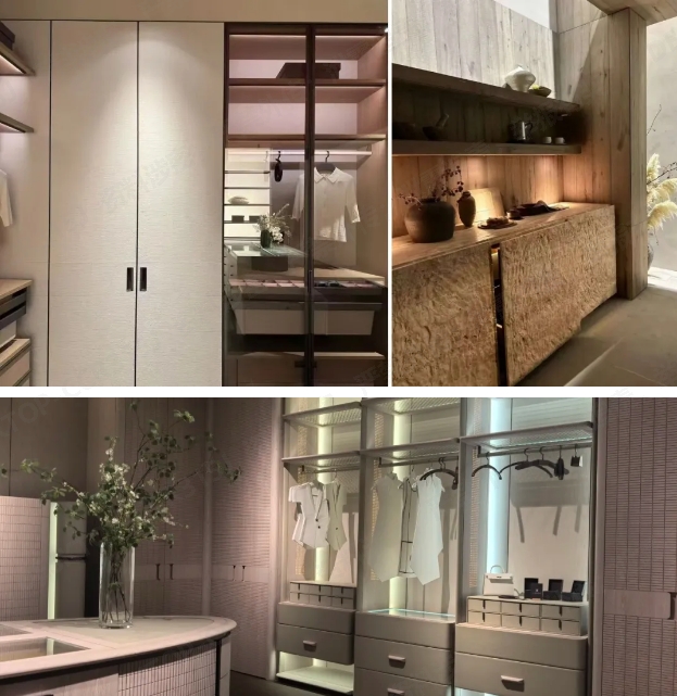 極致自然的藝術追求:首先用藝術手法,從多樣性自然中提取材料、紋理及色彩,設計再造,如胡桃、橡木、榆木等自然之材,木刺、雨絲、砂礫、肌理石等自然之紋,以及不同色度的植物綠、海天藍,豐富微妙的大地色,極度還原的原木色等自然之色,營造松弛、閑適、寧靜、溫暖的氛圍,撫慰身心成為趨勢。其次,極致自然的需求,催生更細膩、更真實自然的設計與技術表達,同步、連紋以及意式涂裝成為熱點。
