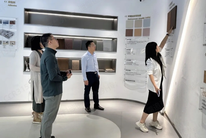 走進邦弗特展廳,便開啟了一場繽紛多彩的材料盛宴。李新雄董事長首先向張兆娟一行介紹了企業(yè)基本情況,接下來,從材料科普館到生活空間材料、從消費包材到新型材料,一步一材,邊走邊介紹,激起了漣一一行的極大興趣。