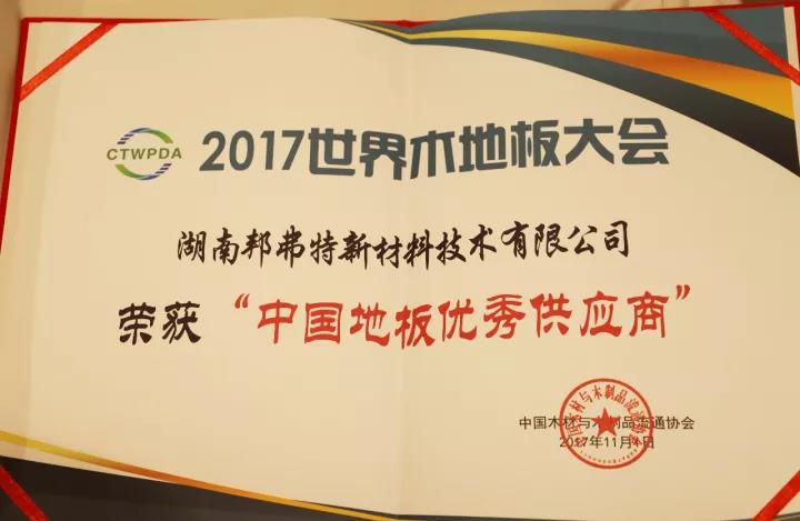 邦弗特喜獲“中國地板優秀供應商”榮譽證書